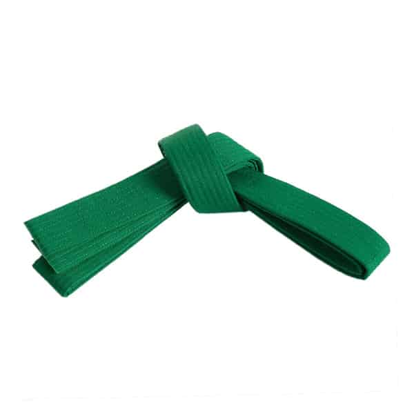 Квалификационный пояс для карате для каратистов. Выполнен из натурального 100% хлопка, поэтому прост в уходе и стирке. Боевой пояс обладает повышенной прочностью на разрыв и не растягивается. Легко завязывается и прочно фиксирует кимоно. Зеленый цвет спортивного пояса соответствует 8 кю по системе, используемой в Японской Ассоциации Каратэ (JKA).Особенности и преимущества: